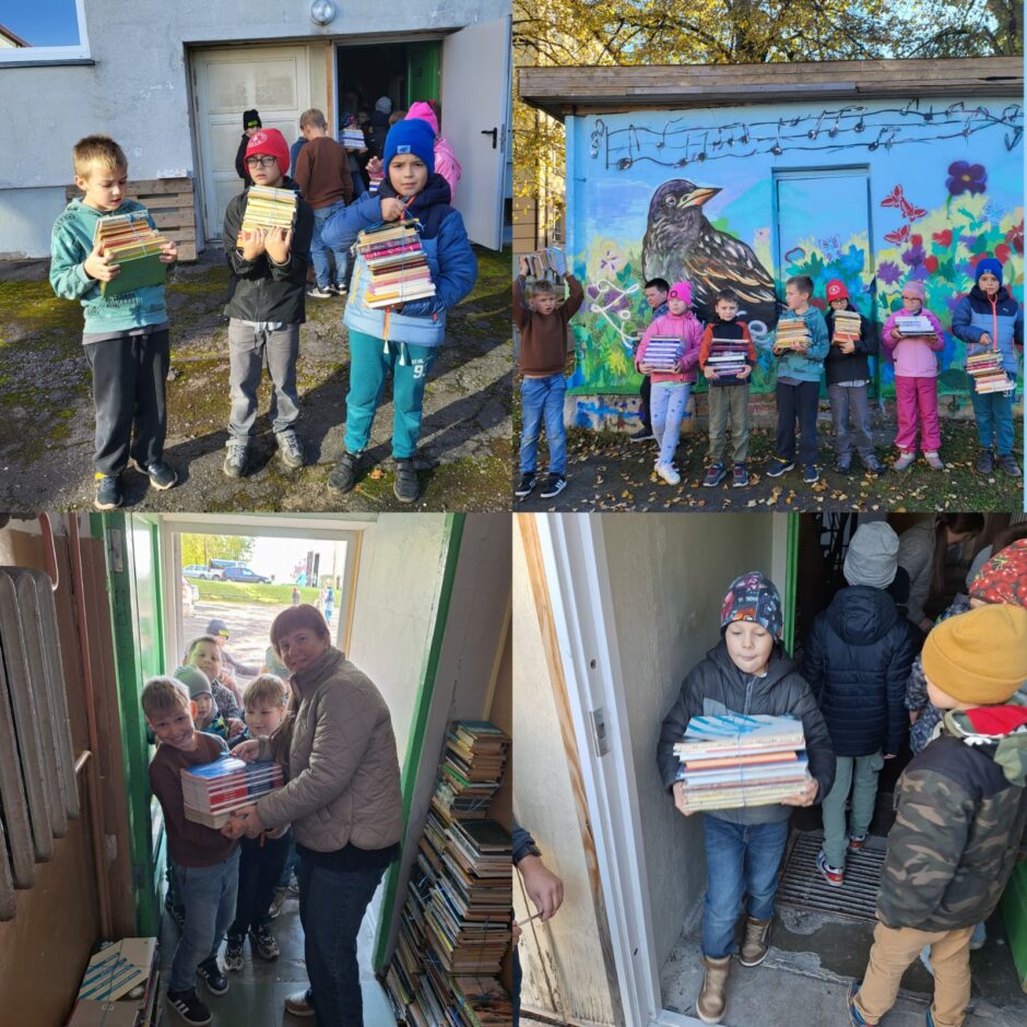 Tāpat skolēni palīdzēja skolas bibliotekārei nogādāt makulatūrai paredzētās grāmatas uz šķūni.